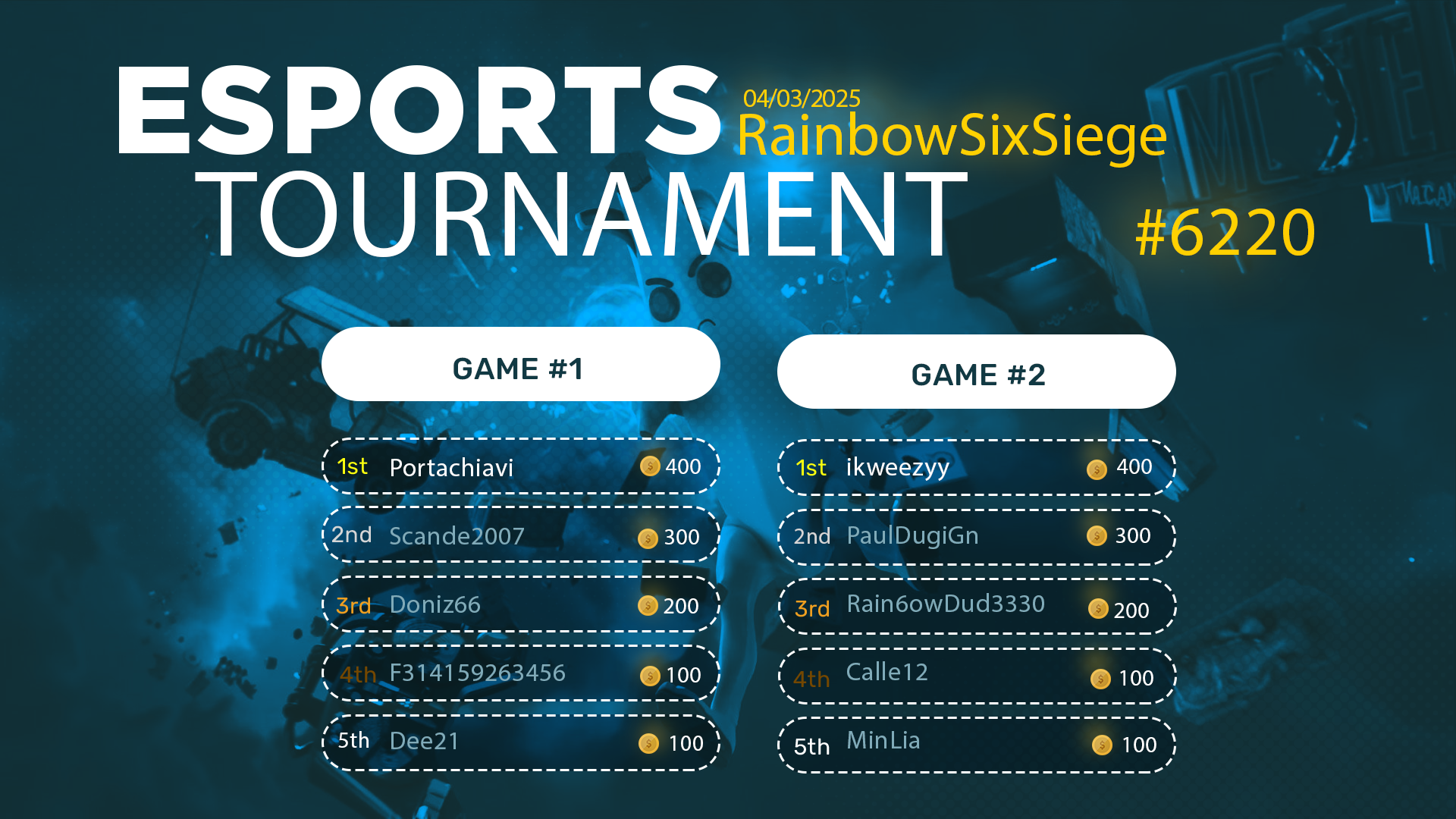 Esports Tournament #6220- Rainbow6S- 04/03/2025