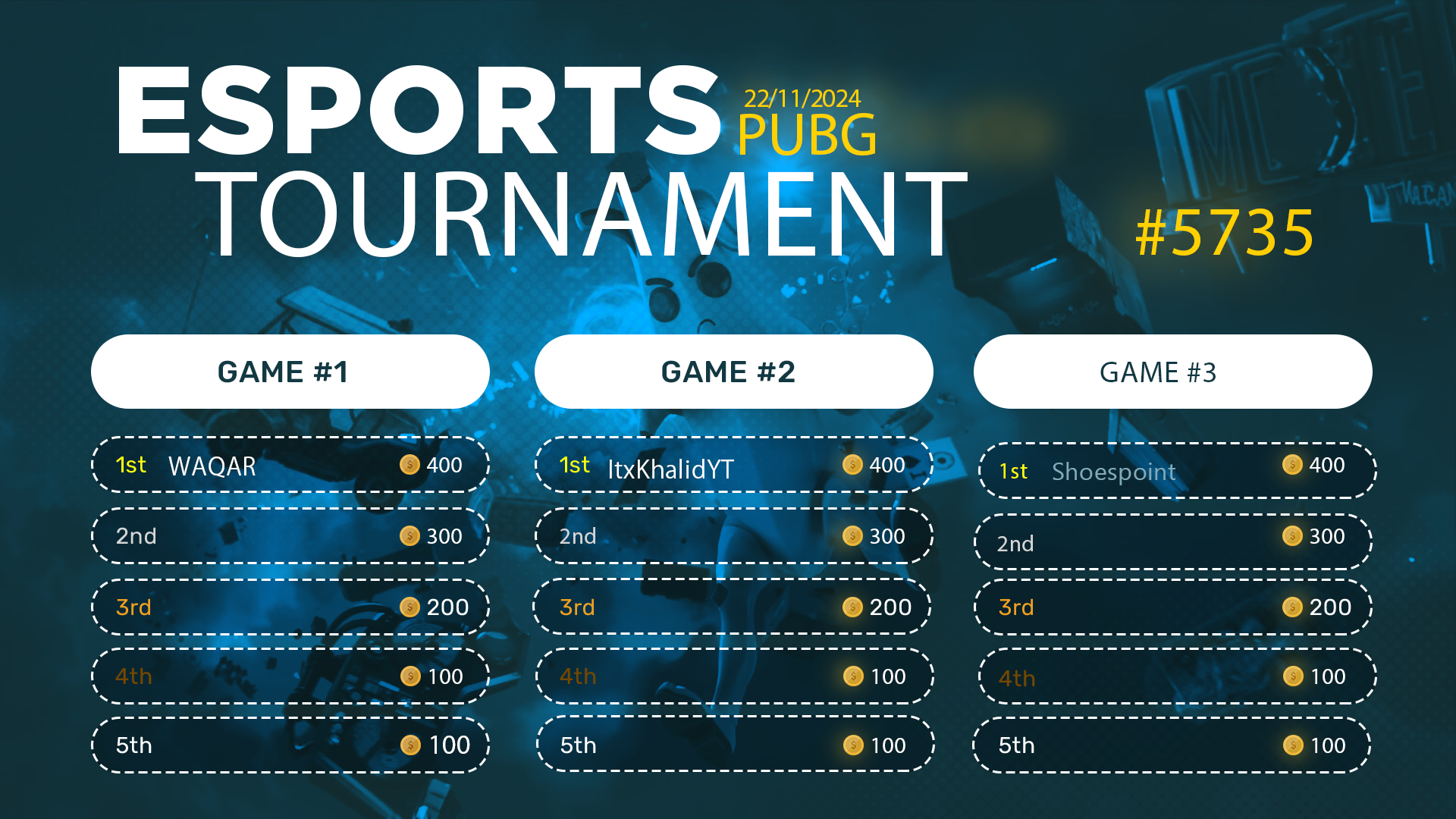 Esports Tournament #5735- PUBG Mob- 22/11/2024