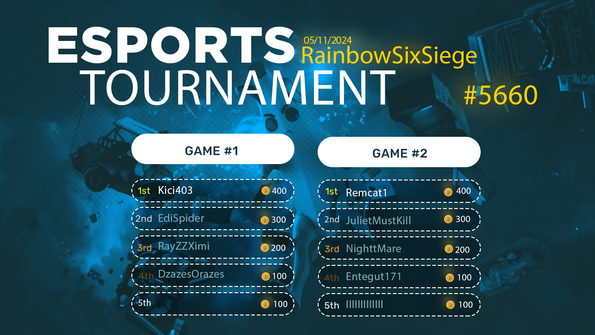 Esports Tournament #5660- Rainbow6S- 05/11/2024
